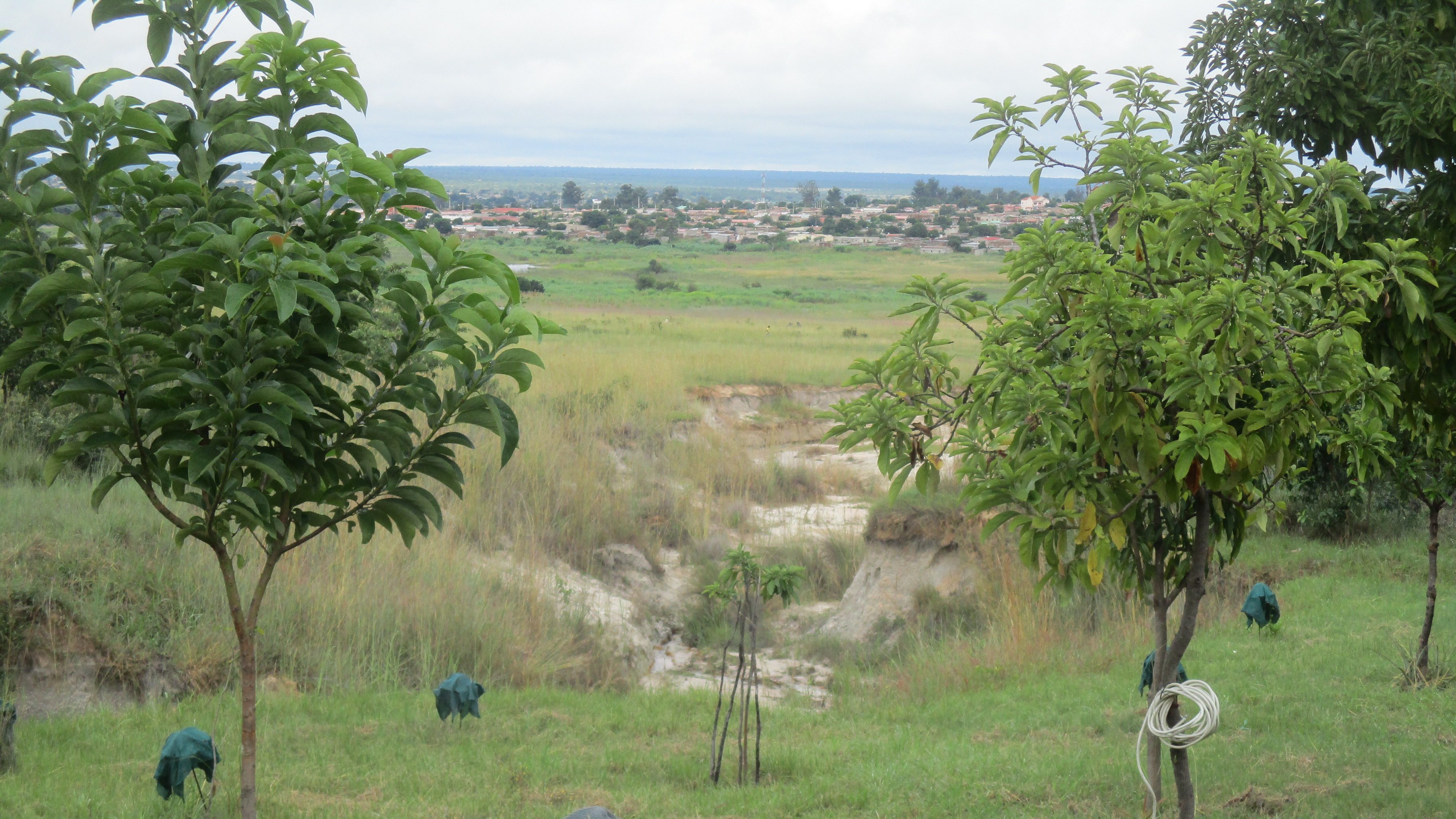 We loaded into the truck for the drive to the OM base. As we drove out of the airport and through Menongue, the pavement soon gave way to rough roads of beautiful red dirt, which reminded me of the red rocks found in Arizona, Utah, and Colorado. As part of my digital scouting, I had found the GPS track of a 4×4 overland convoy across Angola that had stayed a night at the OM base, so I already knew that it was very close to the airport. We soon turned off the road and onto the long “driveway” of the base. Trees lined both sides of the track. As the landscape unfolded before me, I could tell that one of my expectations had been completely wrong. Whereas I had imagined flat, featureless grassland, there were instead rolling hills, a multitude of trees, and a commanding view down the valley across the Cuebe River to the rest of Menongue and beyond. A natural spring flowed out of the hillside and ran roughly east to west, cutting a gully across the base, bisecting it.