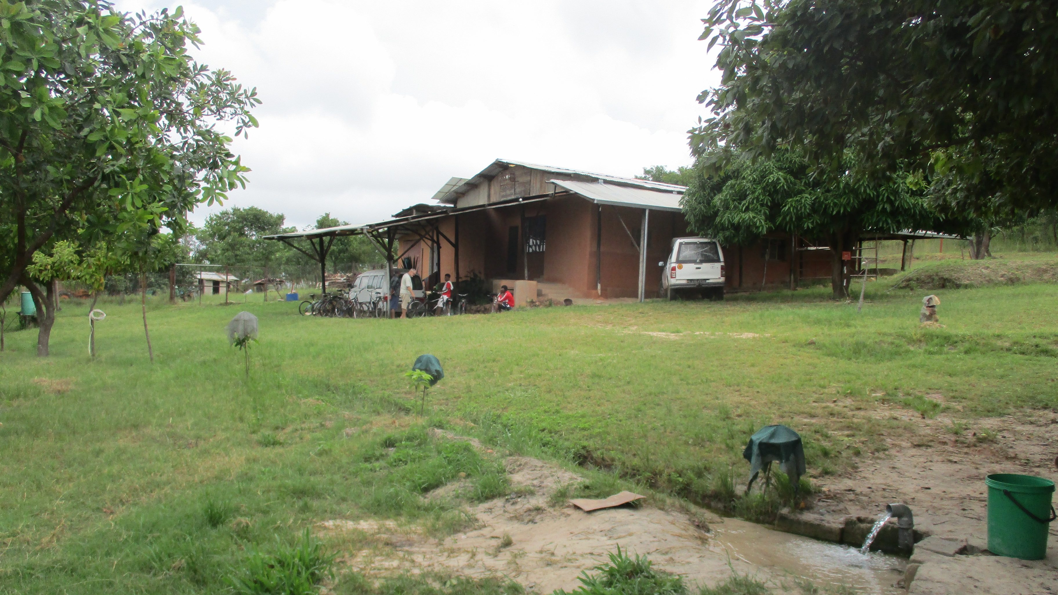 On the north side of the gully, the driveway snaked down to the front of the main house. A garden area and fowl run were next to the main house, and on the opposite side of the driveway were a classroom, a dormitory, and OM worker housing. A prominent feature of the north side was a pipe with fresh water constantly flowing from the spring. The water formed a small pool and followed a trench through the fowl run, down the gully, and into the Cuebe River below.
