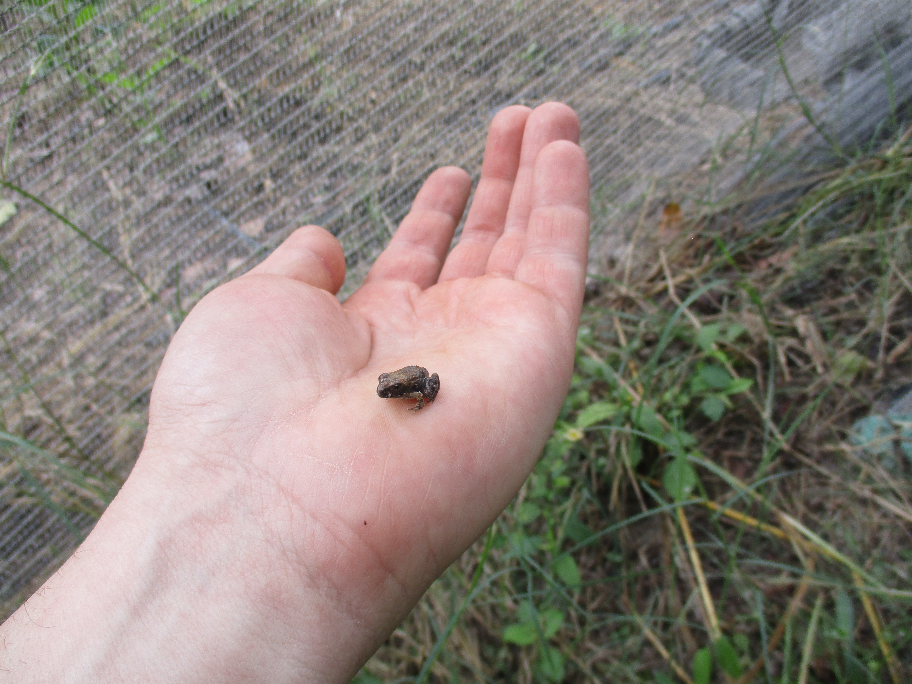 Considering the ever-present danger of mosquitoes, it was a relief to see such a variety of insect-eating animals. Many different species of dragonfly patrolled the grounds. They came in many sizes and colors, including one that was a beautiful orange. Small frogs were around during the day, and big toads came out at night while the mosquitoes were most active. Aside from the mosquito predators, quite a few butterflies could also be seen fluttering around the base.